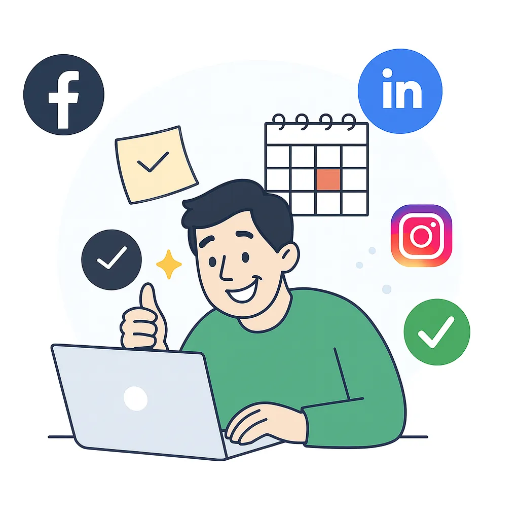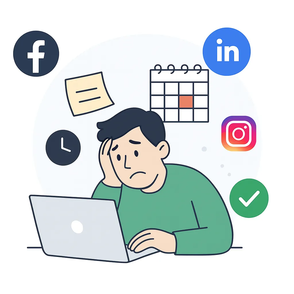 Most businesses struggle to keep up with social media endless brainstorming, creating images, writing posts, and figuring out the perfect schedule - all while running your business